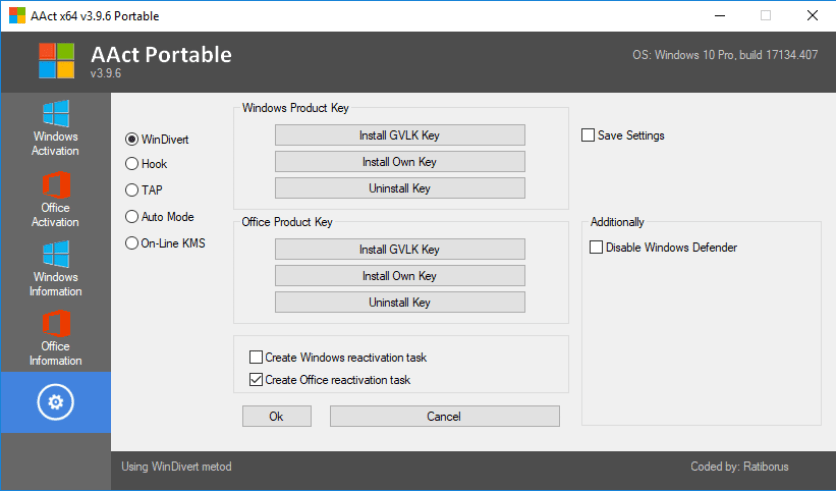AAct – KMS-activator for operating systems Windows VL editions: Vista, 7, 8, 8.1, 10, Server 2008, 2008 R2, 2012, 2012 R2, 2016 and Office 2010, 2013, 2016. Also, you can activate Office 2010 VL on Windows XP. The program is written with use of original technologies and implements a different ideology design of such software tools, which is different from my usual practice