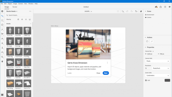 Dimension CC as Adobe – a set of tools for 2D–and 3D-design, to easily create high-quality photorealistic 3D-images, perform compositing 2D–and 3D-visualization resources in a realistic environment products. The basic idea of the product – to give developers the tools needed to integrate its 2D–and 3D-assets without the study of complex and specialized applications. In other words, the program allows you to quickly and simply “delicious” and other creative visualization combines the 2D- and 3D-graphics. Using machine learning, this tool Adobe is able to automatically determine the best lighting and place the light source in the right place. Adobe Dimension CC automatically aligns objects relative to the horizon.