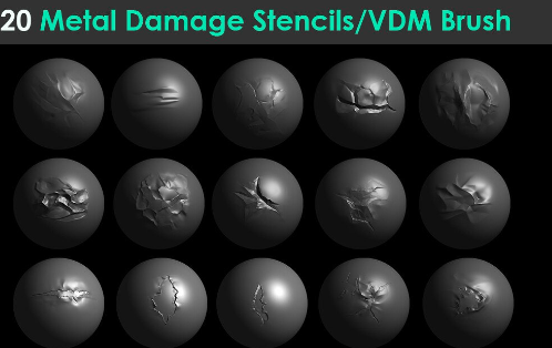 – 2 VDM Brushes for Zbrush 1 Metal Dents Brush and 1 Metal Tear Brush (10 alphas each)