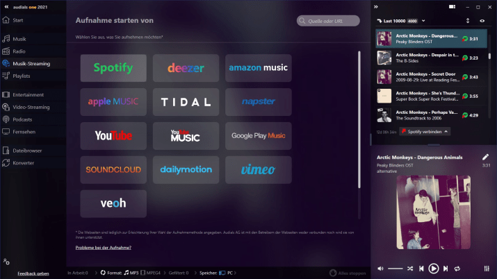 Find, record, save, and convert music, movies, radio & more from streaming services. Record movies, series and television from streams. It’s automatic, fast, convenient, and always in top video quality. Create your own movie collection! Audials One offers the highest resolution, the right frame rate and smooth recordings, even with adaptive streaming. It also includes automatic naming.