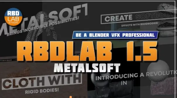 RBDLab 1.5 MetalSoft is a revolutionary tool for Blender. From fracturing objects, destroying them and creating details with debris, dust and smoke, to deforming metal, creating cloth, softbodies… all using rigidbodies, allowing an interaction between different types of simulations never seen before in Blender.