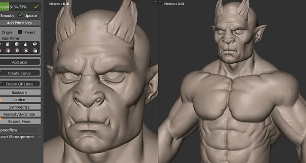 The add-on allows you to create very fast characters, manage Dyntopo Sculpting with booleans, cut curves, skin modifier, decimate, mask, etc.