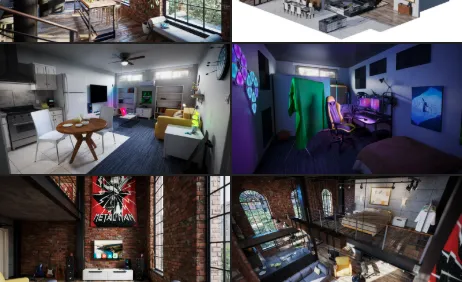 Step into a world of new possibilities with this versatile Kit of beautifully crafted apartment interiors. From the airy elegance of a high-end penthouse to the urban allure of a brick wall loft or the cozy charm of a one-bedroom studio, each space invites creativity and adventure. Complete with a variety of props like appliances, cabinetry, wall art, home electronics, and more, you’ll find everything you’d need to design vibrant, character-driven environments brimming with personality and potential.