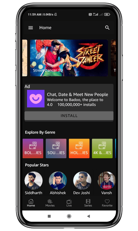-Stream any TV Show, Web Series & Movie with just 1 Tap with it’s Inbuilt Video Player