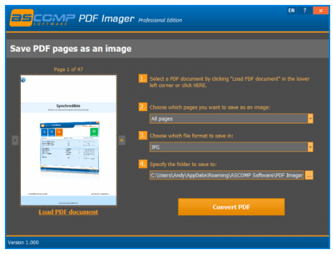- PDF to Image Conversion: Converts PDFs into formats like JPEG, PNG, TIFF, and more.