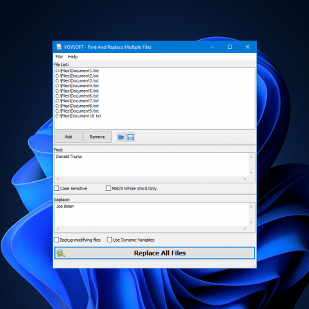 Vovsoft Find And Replace Multiple Files is a powerful utility that caters to users who frequently need to modify text within multiple documents. The software provides an easy-to-navigate interface that allows users to select numerous files for batch processing, thus significantly reducing the time spent on repetitive editing tasks. Its design enhances productivity by streamlining the process of finding specific text strings and replacing them with alternatives across all selected files simultaneously.