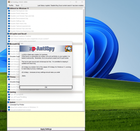 XD-AntiSpy (“XD” stands for eXtreme Defense) is a further development of the legendary little helper XP-AntiSpy, which used to be indispensable in the Windows XP days. The application looks exactly like the original and does the same thing, but now it’s for Windows 11.